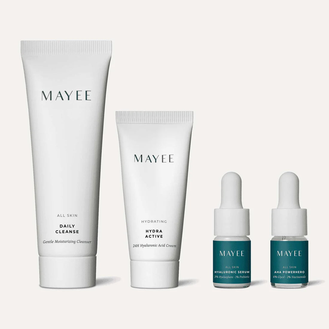 Ontdek de professionele producten van MAYEE in deze kit, speciaal ontwikkeld voor het krijgen van jouw glowy skin. De ultieme introductiekit die jouw huid reinigt, exfolieert én hydrateert. Ik besta uit: